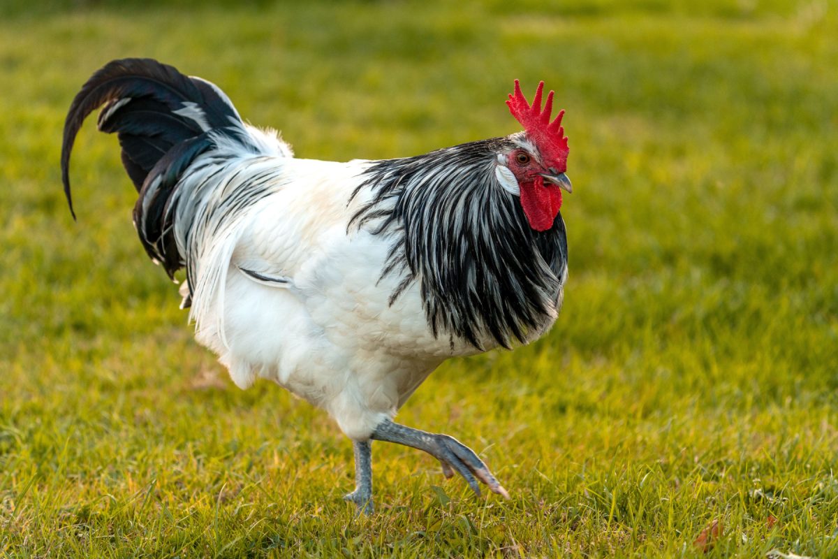 По размеру около двух килограммов, родом из Бельгии. Контрастная расцветка очень чёткая, будто птицу нарисовали чёрно-белым маркером. Яиц даёт 150-180 в год, белые, среднего размера. Это одна из самых продуктивных среди декоративных пород. Характер живой, энергичный. Лакенфельдер не сидит на месте, постоянно в движении.