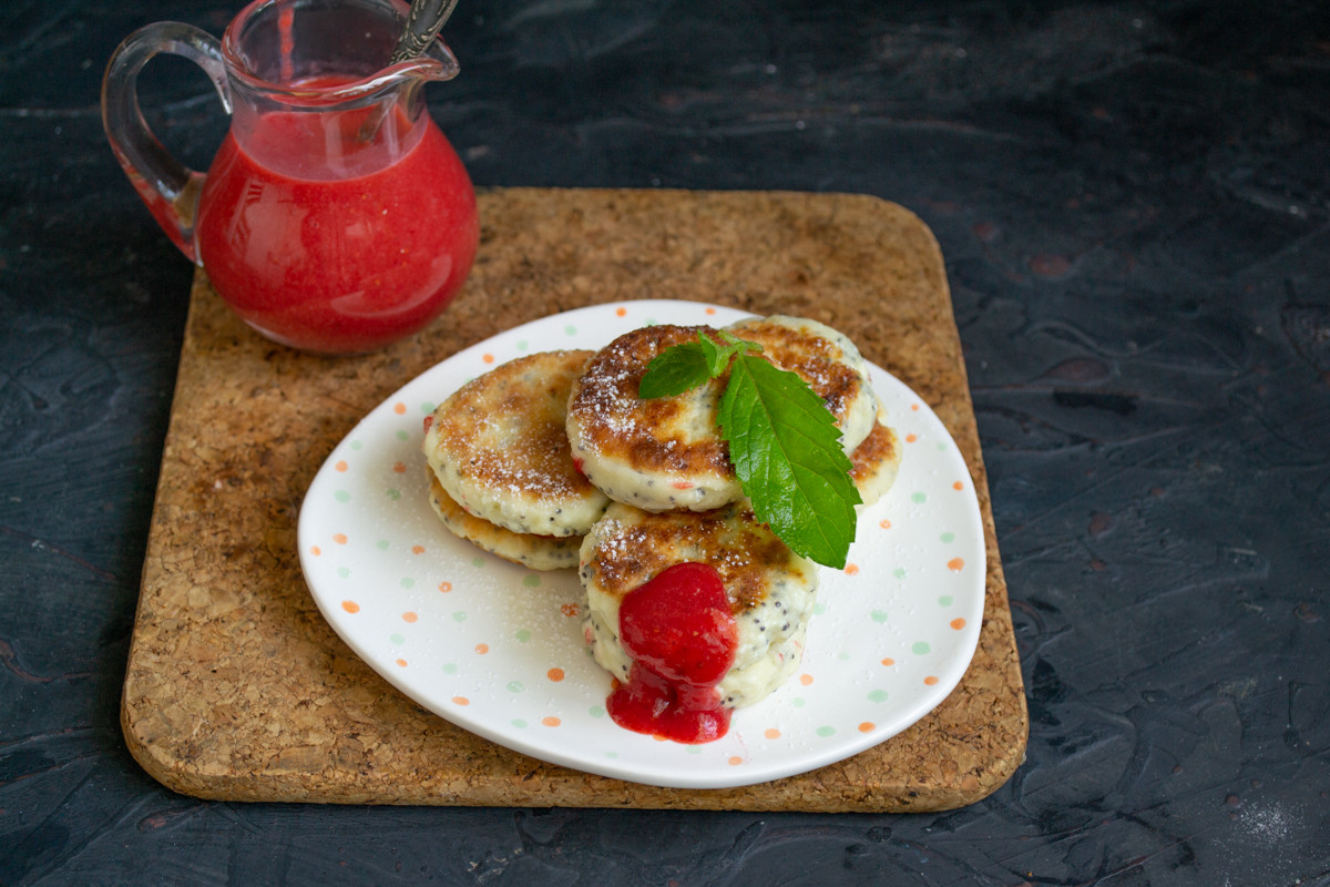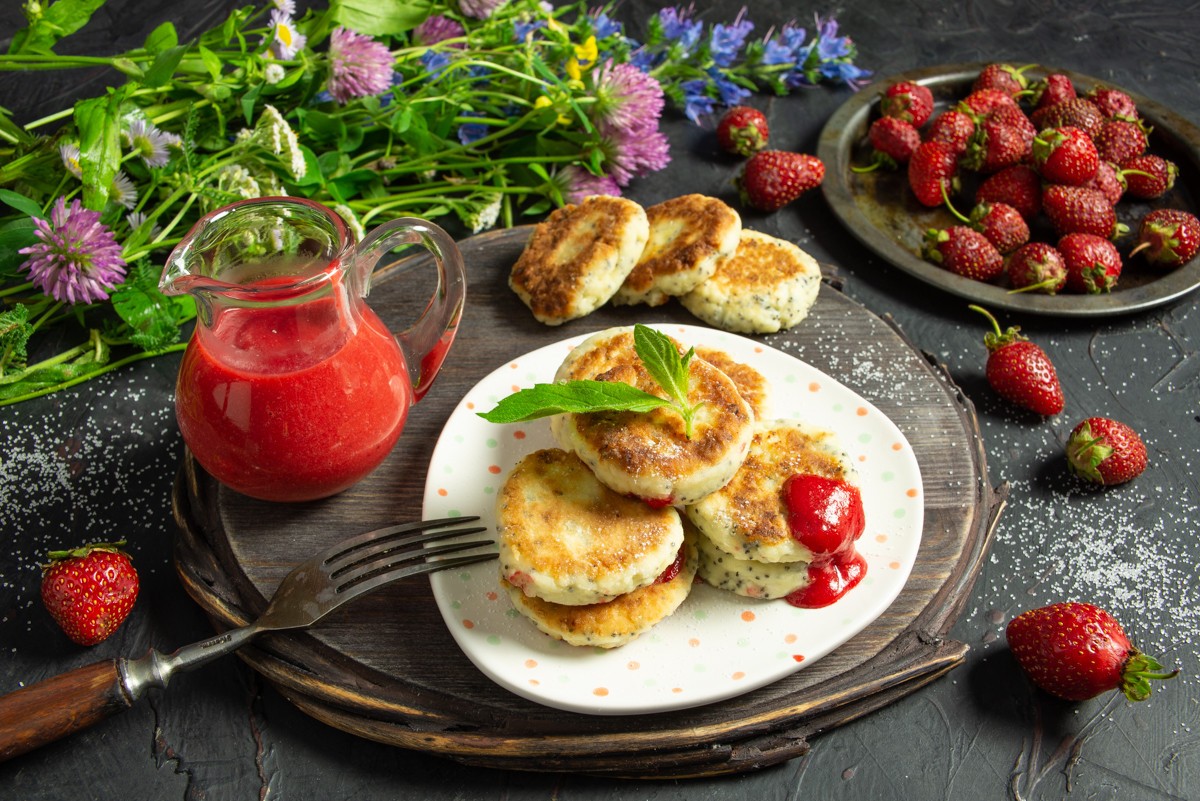 Способ приготовления нежных сырников с клубничным соусом