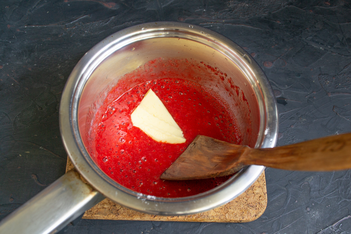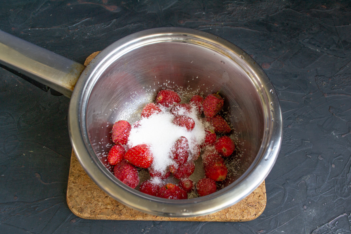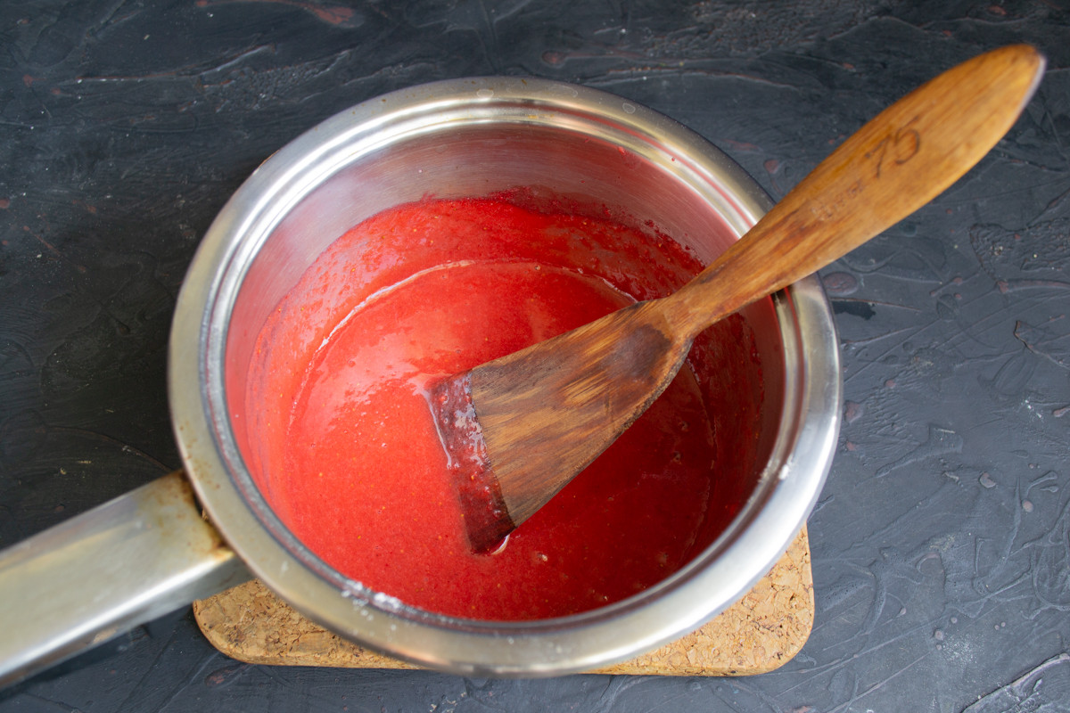 Отправляем сотейник на несколько минут в холодильник, в охлажденном виде клубничный соус будет вкуснее.