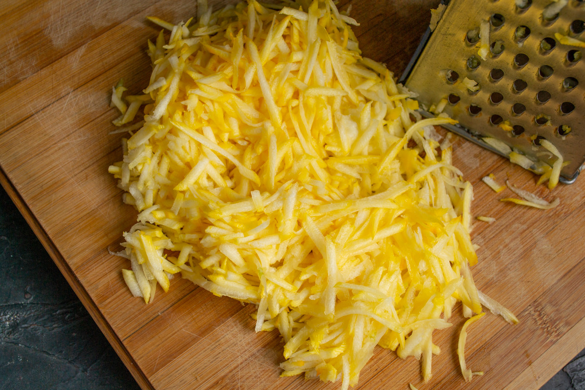 Очищенный кабачок натираем на крупной овощной тёрке.