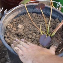 Ёмкость заполняем готовой смесью так, чтобы она не доходила до края 3-4 см. В центре делаем углубление, помещаем туда основной корень нимфеи и присыпаем грунтом. Поверхность почвы «мульчируем» крупнозернистым песком, галькой или мелким гранитным щебнем. Такой приём особенно актуален, если в пруду есть земноводные или рыба. После посадки точка роста кувшинки должна остаться над поверхностью почвы.