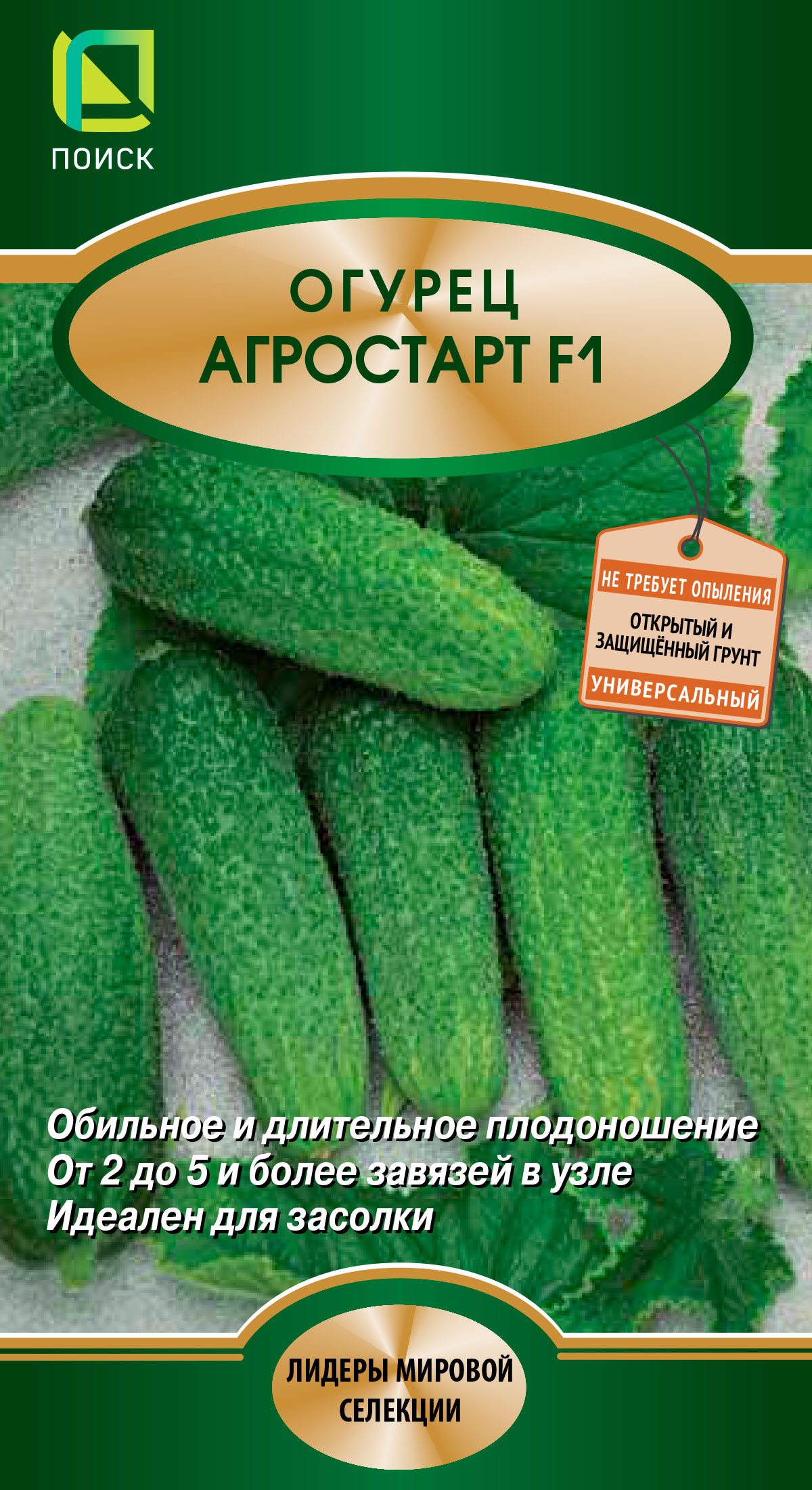 Представляет интерес и Агростарт F1. Уже через 40-45 дней после всходов растение начинает активно плодоносить. В каждом узле формируется по 2-5 и более выровненных тёмно-зелёных плодов длиной 11-14 см. Они плотные, хрустящие, без пустот, с ярко выраженным вкусом – идеальный вариант для засолки. Кроме того, гибрид устойчив к кладоспориозу, мучнистой росе и вирусу огуречной мозаики, а также толерантен к пероноспорозу.