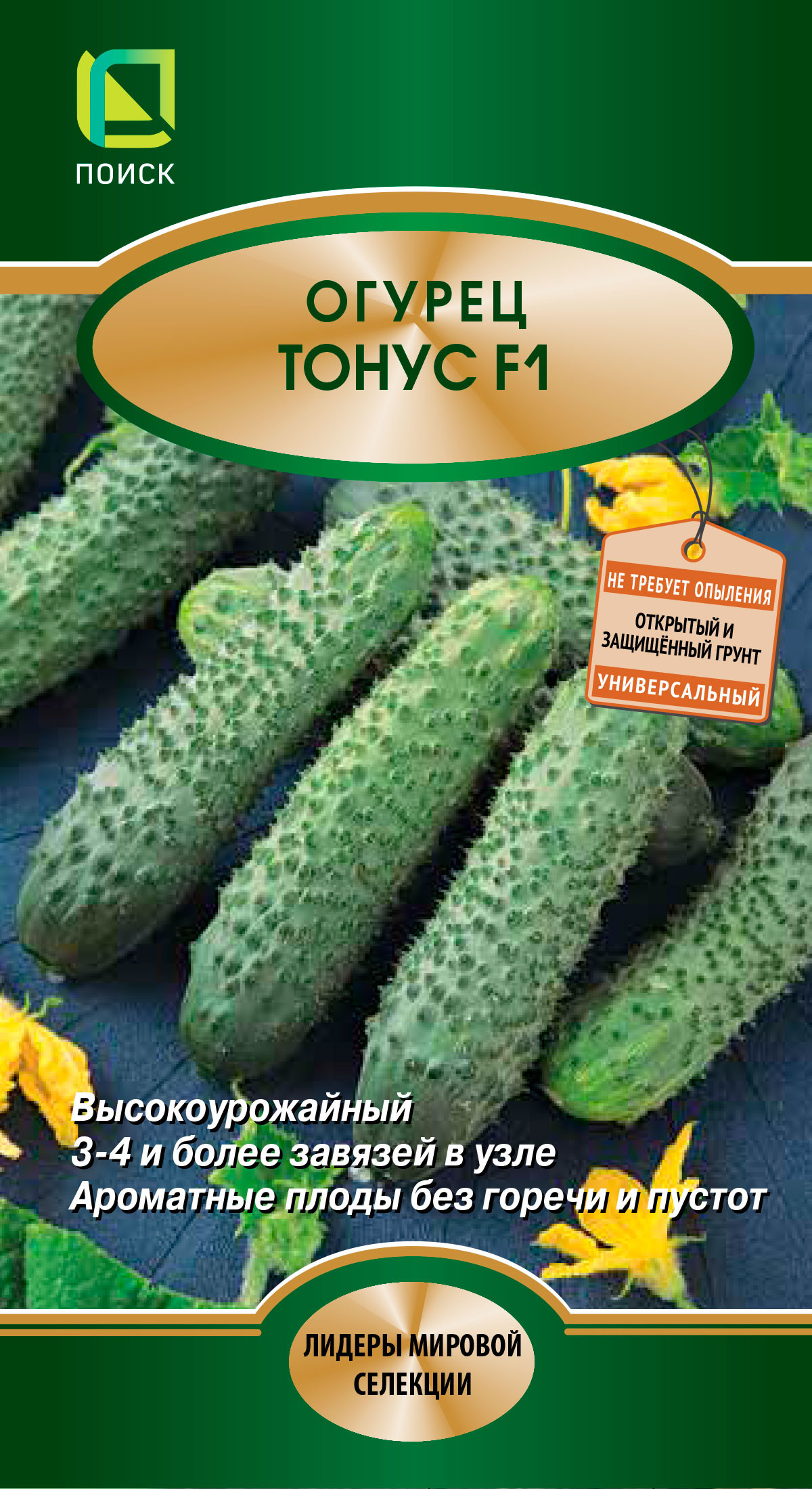 Хорошо переносит резкие перепады дневной и ночной температуры раннеспелый (40-43 дня) гибрид Тонус F1. Его можно выращивать в открытом и защищённом грунте. Мощное растение женского типа цветения формирует в каждом узле по 3-4 и более завязей. Плоды тёмно-зелёные, крупнобугорчатые, белошипые, с ароматной, хрустящей мякотью, без горечи и пустот. Устойчив к комплексу болезней. Для свежего потребления и переработки.