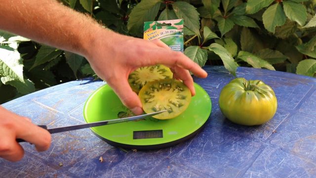 Высота кустов данного сорта напрямую зависит от условий, в которых выращивается растение. Но что остается неизменным – плоды, а точнее, их солидная масса и яркий окрас. Вес каждого созревшего томата около 600 г. Разламывая помидор, можно заметить повышенную сахаристость мякоти. Томаты невероятно сочные и приятные на вкус. Идеальный вариант не только для всевозможных летних салатов, но и для заготовок на зиму.