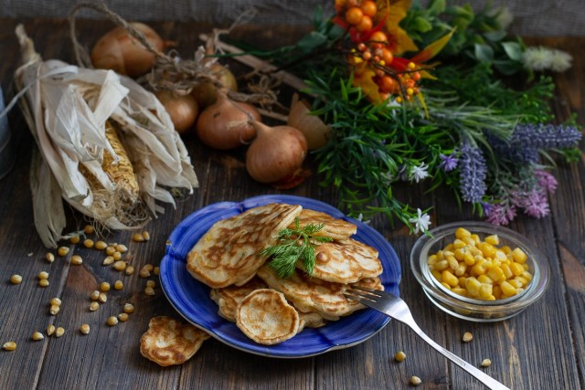 Оладьи с кукурузой и луком — простое, вкусное блюдо, которое легко приготовить на завтрак или на ужин. Оладушки получаются пышными, золотистыми, так и просятся в рот. Оладьи с начинкой или блины с припёком готовят во многих странах мира. Начинки могут быть разными — мясными, рыбными, вегетарианскими, фруктовыми или ягодными. Консервированная кукуруза — простая и доступная начинка, которая всегда под рукой. Кукуруза отлично сочетается с луком и сыром, поверьте, получается очень вкусно!