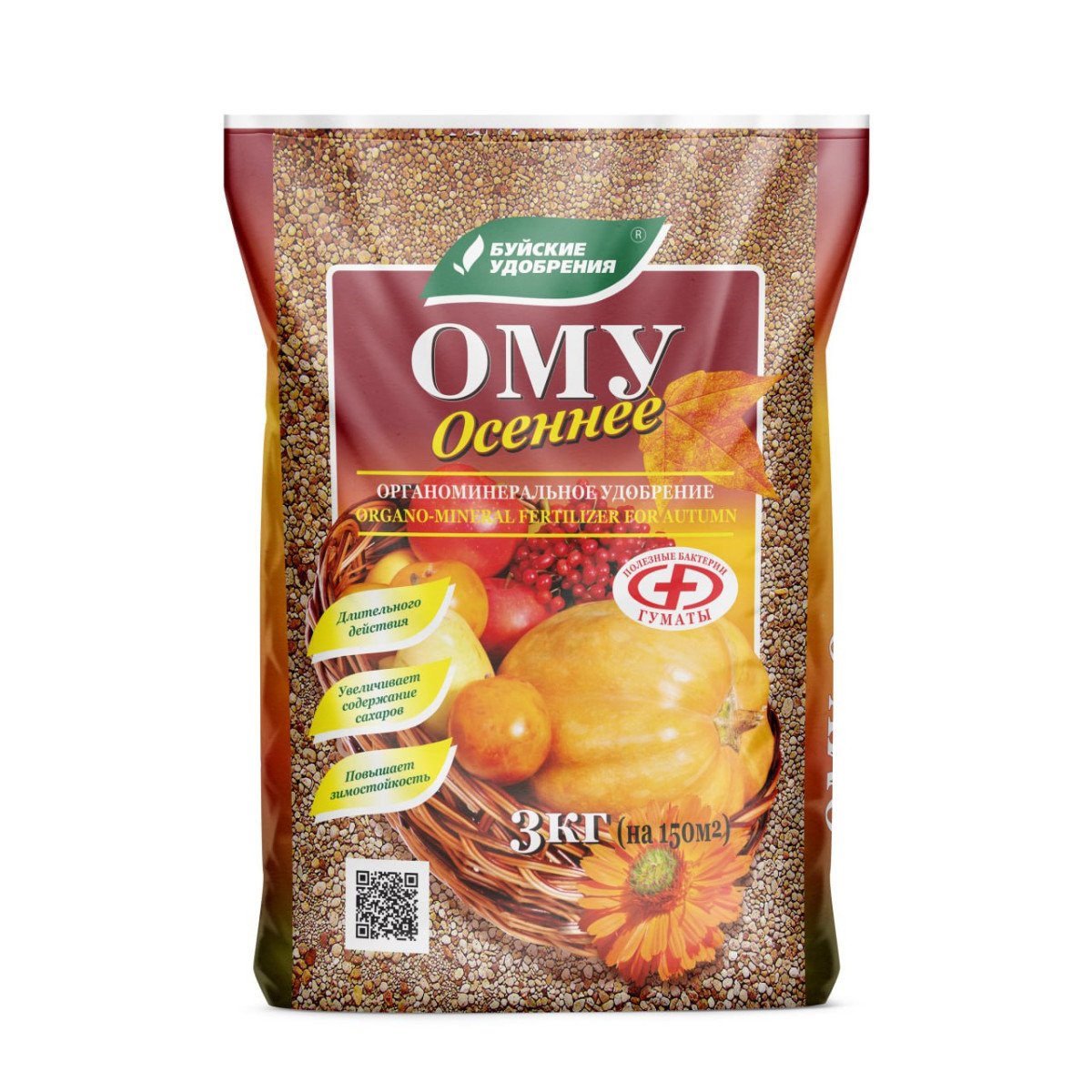 Для основной сезонной подкормки плодово-ягодных деревьев и кустарников, роз и многолетних цветов прекрасный выбор – ОМУ «Осеннее». В него входят калий, фосфор, гуминовые соединения и культуры полезных бактерий. За счёт чего растения получают необходимое питание, а почва по-настоящему оживает. Удобрение вразброс вносится в приствольные круги многолетних растений из расчёта 25-40 г на 1 кв.м. и зарыхляется граблями или неглубоко перекапывается (если позволяет корневая система растений).