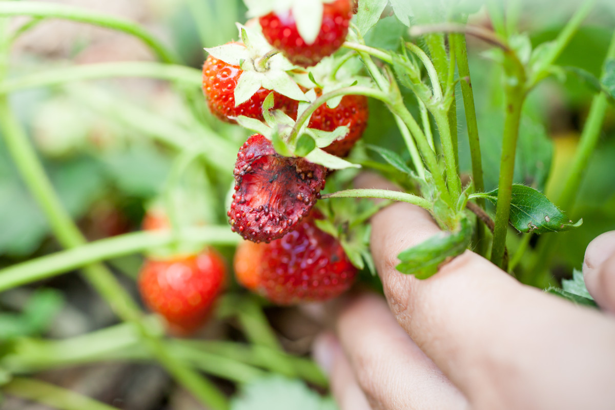 Раз в 3 года обязательно меняйте место выращивания клубники, чтобы не накапливать вредителей и болезни, как следствие, предотвратить распространение долгоносиков. Также рекомендованы послеуборочные опрыскивания листьев для контроля взрослых долгоносиков. Главный признак появления взрослых особей долгоносика — характерные зазубрины на листьях.