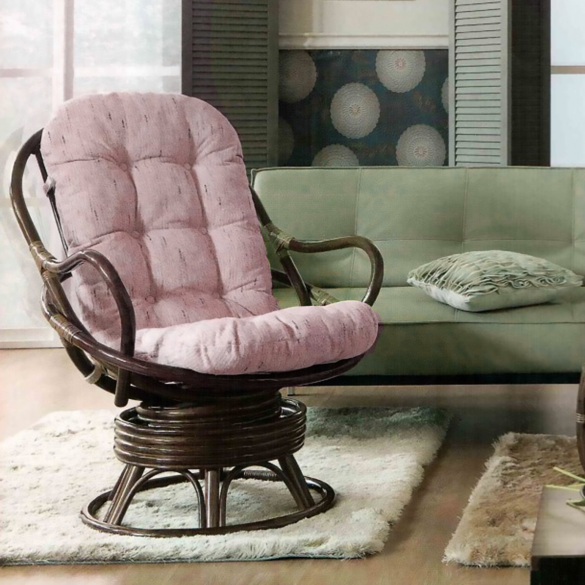 - Кресла на пружине. В основе этой конструкции лежит мощная кольцеобразная спираль из ротанга, которая обеспечивает плавное и мягкое покачивание в разных направлениях. Такие кресла обладают повышенной устойчивостью и грузоподъёмностью, а само кресло может иметь как классический вид, так и гнездообразную форму в виде чаши, в которую приятно забраться с ногами и обложиться подушками.