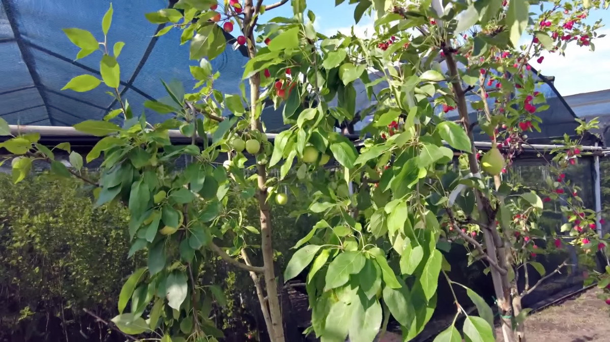 Кроме этого, в питомнике есть и другие интересные культуры, например, сладкоплодная калина и сорбарония (гибрид красной и черноплодной рябины), которые формируются как в виде куста, так и на штамбе.