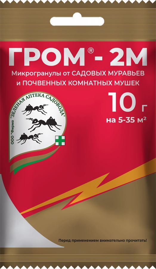 После уничтожения основного вредителя нужно ликвидировать и обстоятельства, способствующие его распространению. А одна из причин появления тли – это муравьи. С ними возвращение тли это только вопрос времени. Вывести с участка муравьёв поможет препарат «Гром-2М». Средство выпускается в форме микрогранул с действующим соединением имидаклопридом. Гранулы эффективно уничтожают муравьёв в почве и гнёздах. Их нужно заделать в землю на глубину 2-3 см (30 г/10 кв.м рыхлением), а также увлажнить грунт до или после внесения, чтобы ускорить действие инсектицида. Результат заметен уже через 3 дня, а общий защитный период составляет до 3 месяцев. То есть, фактически одного применения средства «Гром-2М» хватает, чтобы почти на всё лето забыть о муравьях на обработанном участке.