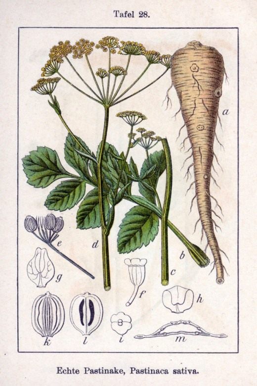 Пастернак посевной (лат. Pastinaca sativa) – двулетнее растение из семейства сельдерейных, с толстым корнем, ребристым стеблем и перистыми листьями. Цветет мелкими желтыми цветами. Растение культивируется во многих странах, однако его родиной считается Центральная Европа, а также Алтайский край и юг Урала, где можно обнаружить пастернак в диком виде. Растение неприхотливое и очень хладостойкое, чем отчасти объясняется его популярность в течение многих столетий. Корень пастернака, а иногда и зелень издавна используются в кулинарии разных стран. Пока открытие Америки не обогатило Европу картофелем, пастернак являлся основным пищевым корнеплодом в большинстве европейских стран. Это растение было известно еще древним римлянам, которые готовили десерты из фруктов, меда и корня пастернака, обладающего пряным, сладковатым вкусом, немного напоминающим вкус моркови.