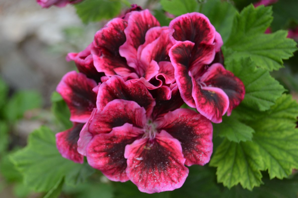 Есть среди пеларгоний и виды с более деликатными стеблями. Листья на длинных черешках у всех пеларгоний кажутся изысканными. У одних видов они круглые, у других – почковидные, у третьих — перистые. Цельный край встречается чаще, чем зубчатый, почти всегда волнистость создает эффект большей нарядности. Кружевные или цельные, листья пеларгоний всегда выглядят празднично, благодаря ярким оттенкам окраса, с разными зонами и полосами, повторяющими форму самого листа, и бархатистой, особенной опушке.