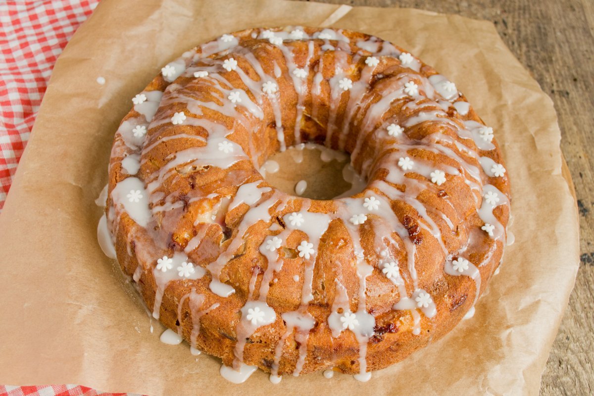 Поливаем холодный пирог лимонной глазурью, украшаем кондитерской посыпкой.