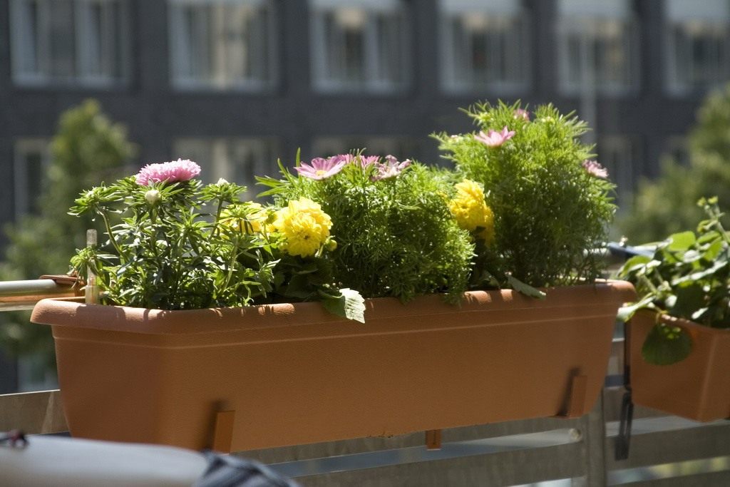 - прочно закрепите ящики и опоры для цветов на полу или на ограждении балкона;