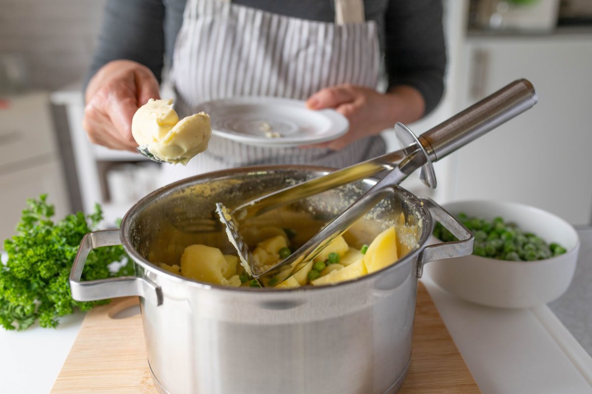 В общепите норма масла — 5 граммов (около 40 ккал). Дома мы щедро сдобрим пюре, чтобы оно таяло во рту. Чтобы добиться этого вкуса, нужно положить минимум 30–40 граммов масла на одну порцию. Это мгновенно добавляет ~250-300 ккал. В сумме с жареной котлетой ваш «легкий домашний ужин» может весить за 1000 калорий (а это почти моментальные 50-100 грамм к показателю на ваших весах на следующее утро. И это за один ужин! А теперь умножьте это на месяц, пол года, год…), хотя вы съели всего одну порцию картошки и кусочек мяса.