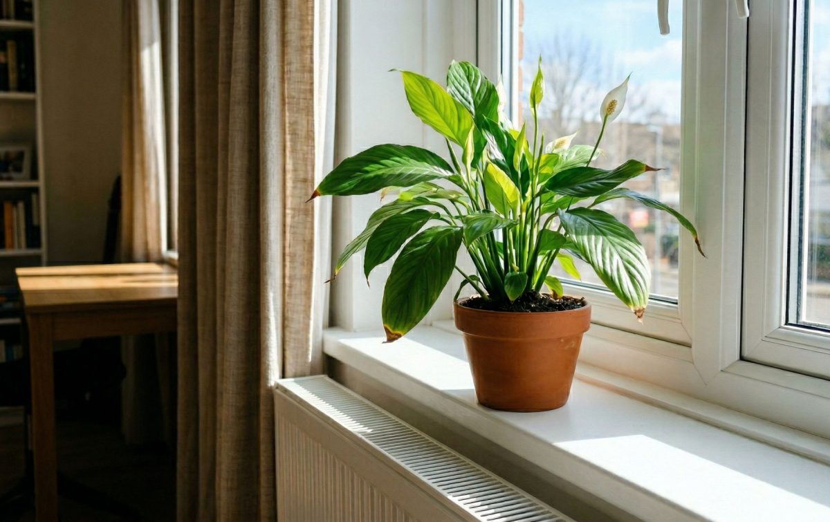 Что делать: если на растение попадает прямое дневное солнце, его лучше убрать из зоны лучей или притенить. Спатифиллуму нужен яркий рассеянный свет, а не жаркая стеклянная ловушка на южном окне.