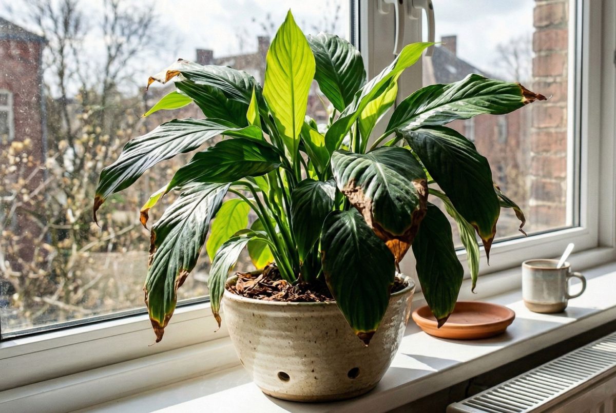 Весной спатифиллуму часто становится только сложнее. Батареи в марте часто ещё работают, воздух в квартире остаётся сухим, солнце становится активнее и бьёт в окна уже по-другому, температура у стекла и в комнате меняется сильнее, а полив мы нередко продолжаем по зимней привычке. Первыми на всё это отвечают именно кончики листьев. В статье расскажу, как точно диагностировать причину и что с этим сделать.