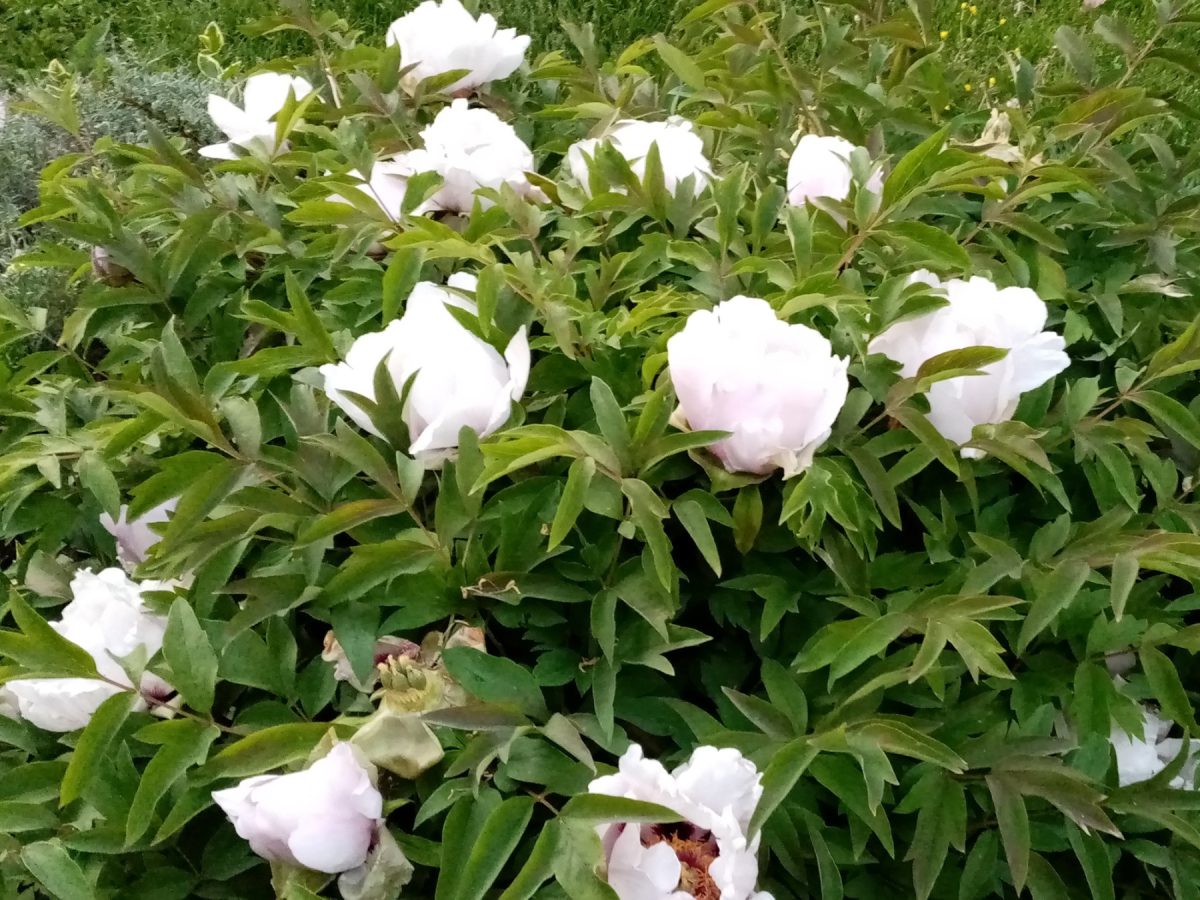 Поскольку покупателей, которых надо было бы предостеречь, вокруг не было, я не стала с продавцом препираться, просто купила пару корневищ травянистого пиона за ту цену, которой они вполне соответствовали. Выросло то, что мне нужно: травянистые молочноцветковые пионы с розовыми немахровыми цветками.