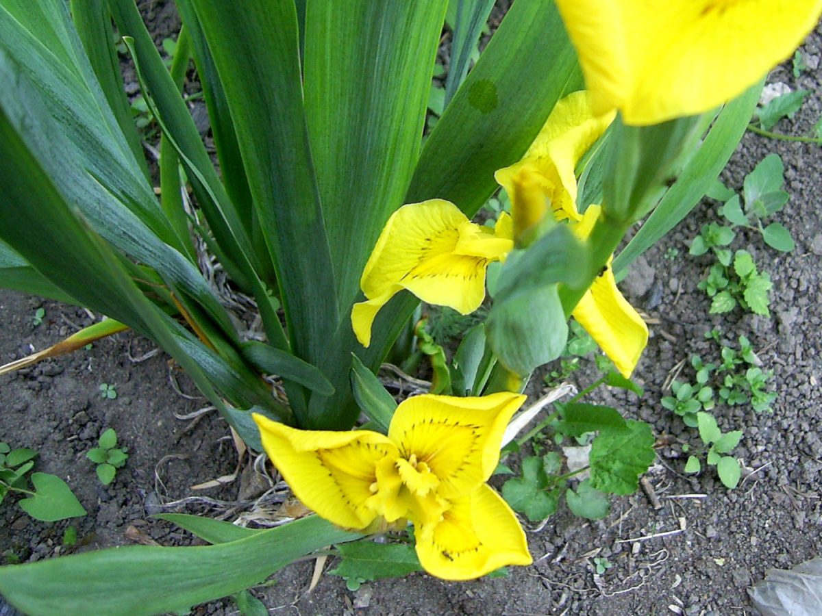 Наиболее знакомые корневищные ирисы — бородатые. Корневище у него толстое, горизонтальное, прямо-таки клубневидное, с отходящими от него нехилыми корешками. Похожее корневище и листву имеет ирис болотный, по-своему приятный, но до роскошных бородатых ему далеко.