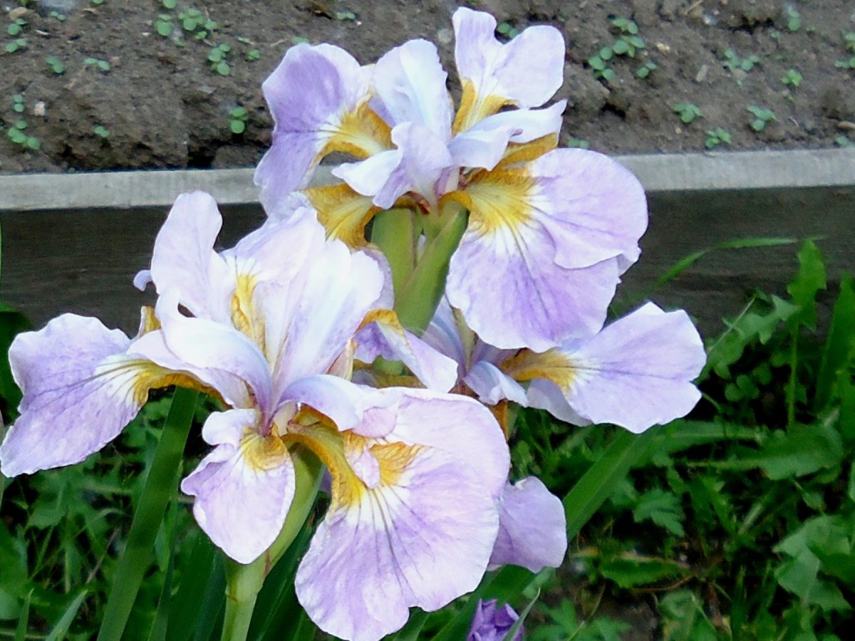 Бородатые ирисы нередко продают на рынках летом в цветущем состоянии с открытой корневой системой — там сразу понятно, что вырастет. Приживаются они хорошо, если после покупки сразу обрезать цветонос (в вазу его!) и поместить корневище в воду с добавкой какого-либо микробиологического препарата (Байкал-ЭМ, Сияние, Флорис) часов на 12. При высадке обильно полить этой же водой. Я обычно вместо препаратов добавляю в воду кусок дёрна из зоны естественного залужения сада, там микроорганизмов в разы больше, и они «родные».