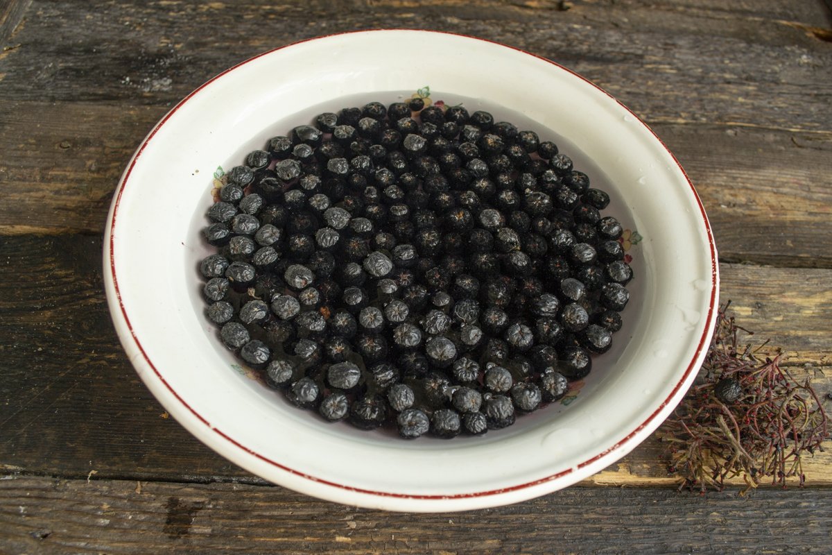Собираем аронию, обрываем ягоды с грозди. Из собственного опыта – лучше взять перезревшие и даже немного подсохшие плоды, на качество готового продукта это никак не влияет, только будет вкуснее.