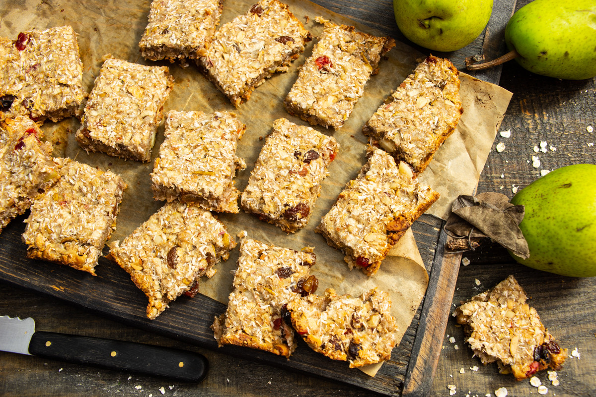 Полезный перекус или сладости для тех, кто решил готовить правильные десерты. Готовим яблочные батончики-мюсли с грушей и овсяными хлопьями. Такие батончики получаются чуть влажными, довольно мягкими, в общем зубы не портят. Для сладости в рецепте мёд, вы можете использовать заменитель сахара в качестве подсластителя. Кружка горячего зеленого чая или вкусного кофе и полезный батончик – заряд бодрости с утра!