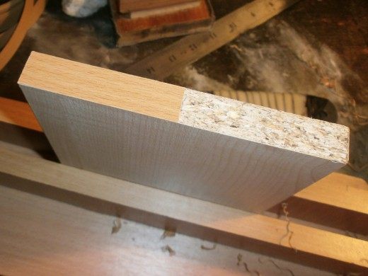 Кусочки ДСП оклеиваем кромкой (утюг вам в помощь),а излишки срезаем ножом и зачищаем наждачкой.
