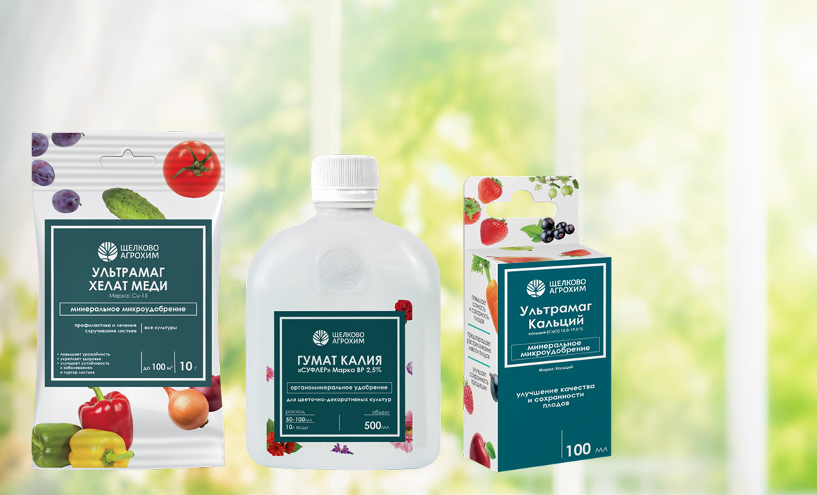 Комплекс поддерживающих подкормок от «Щёлково Агрохим» состоит из нескольких удобрений – гумат калия «Суфлёр», Ультрамаг хелат меди и Ультрамаг кальций.