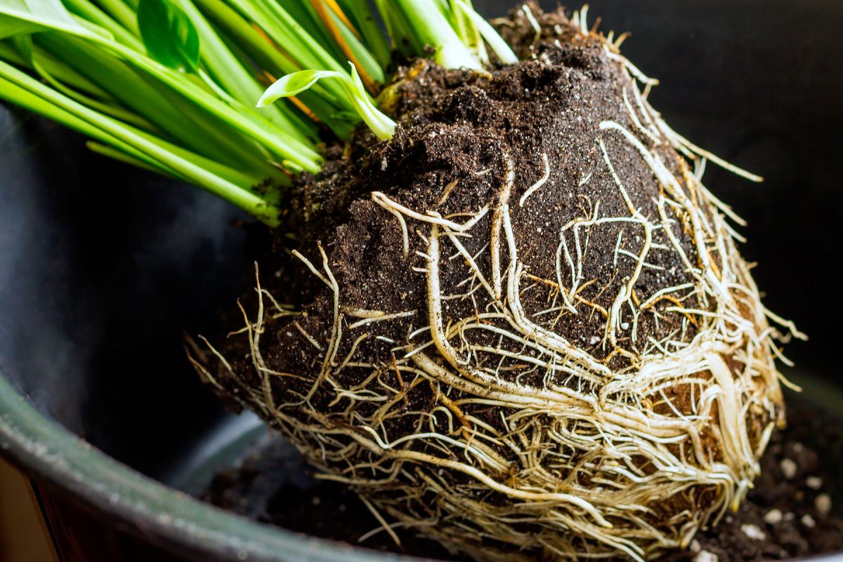 Самый надёжный признак – корни. Если они массово выходят из дренажных отверстий, плотно оплели ком и при выемке идут по кругу плотной «корзиной», растению уже тесно. У здоровой корневой системы корни должны быть светлыми, упругими и живыми. Если они плотным кольцом обнимают стенки горшка, это уже не догадка, а прямой сигнал к пересадке.