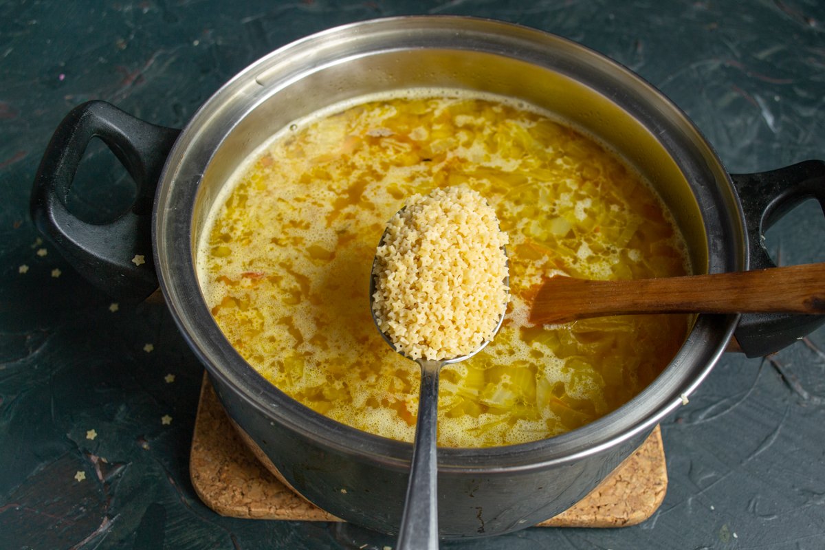 Когда картофель станет мягким, солим по своему вкусу и добавляем макароны звёздочки. Варим 5-6 минут, звёздочки нужно готовить до состояния «аль-денте», так итальянцы варят пасту – чуть-чуть недоваривают.