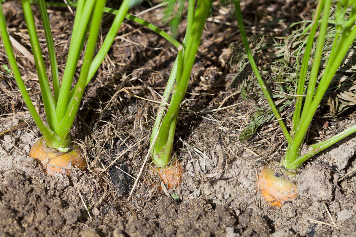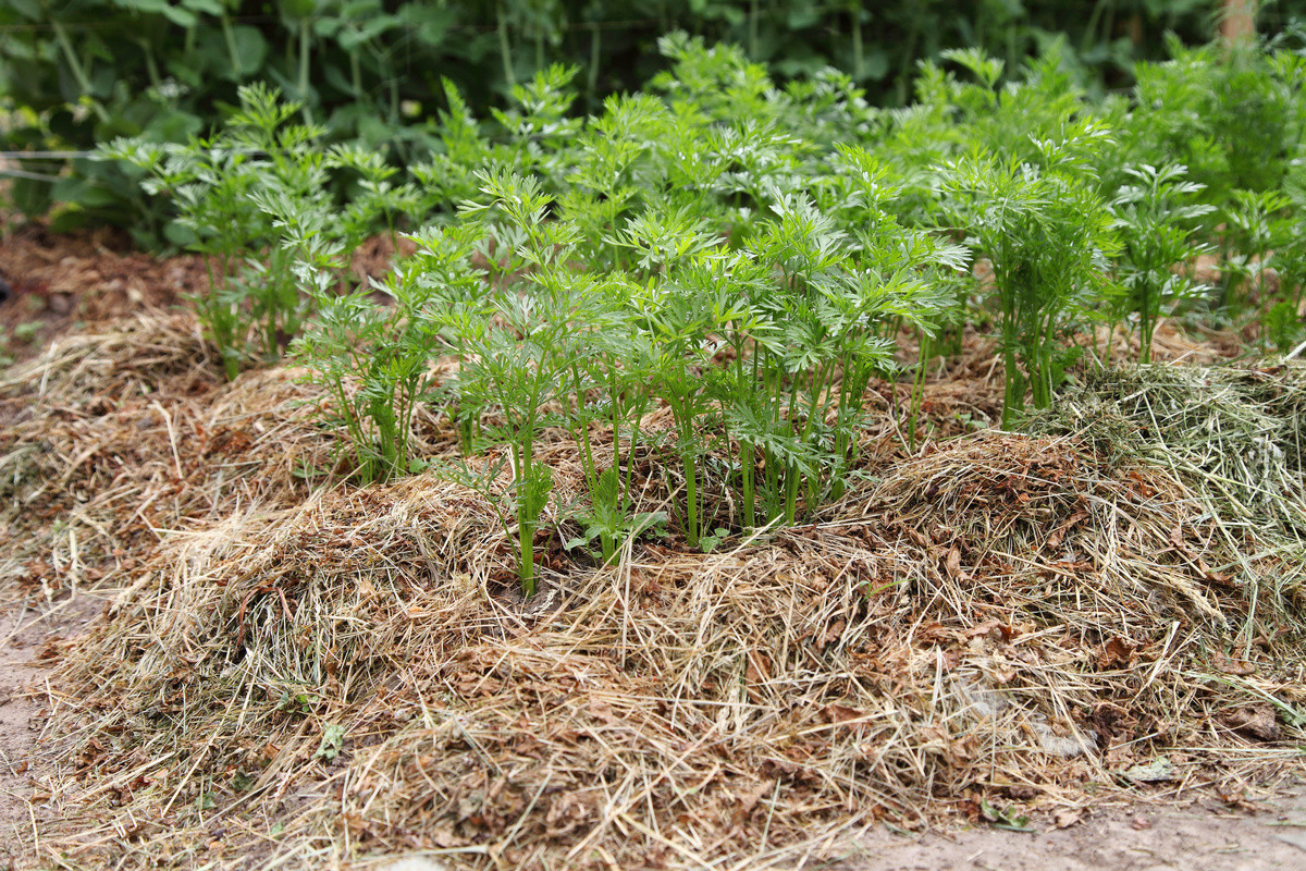 С морковью правило «любая мульча лучше, чем без нее» работает точно. Во время всех работ стоит следить за тем, чтобы верх корнеплодов был всегда прикрыт почвой или мульчой.