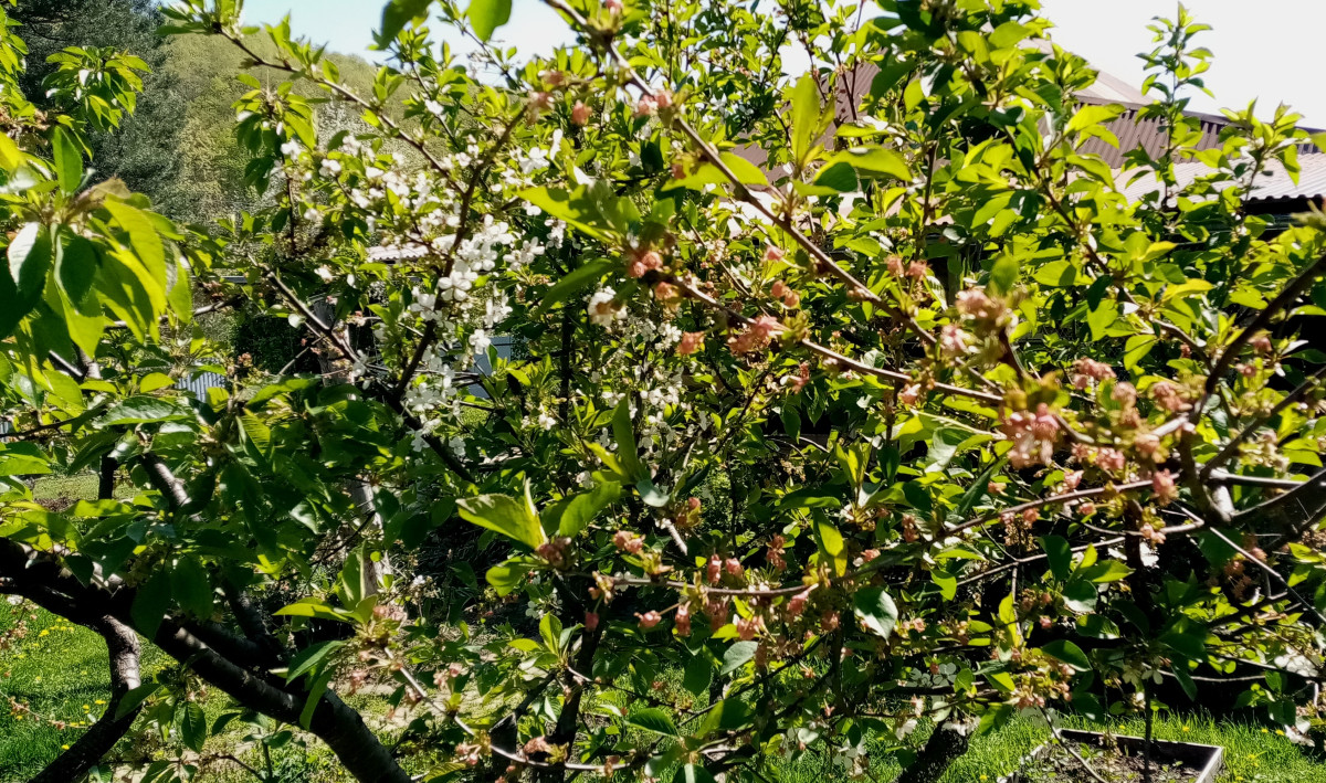 Преимущества прививок разных сортов очевидны: ветки цветут одна за другой, растягивая цветение, пересекаясь на несколько дней — опыляется всё очень хорошо. Цветение некоторых сортов в этом сезоне попало под заморозки до -2, остальные либо уже отцвели, либо ещё не зацвели, так что урожай всё равно будет. К тому же не нужно высаживать дополнительно сорта-опылители, прививки справляются. Да и просто продлить цветение сада всегда приятно.