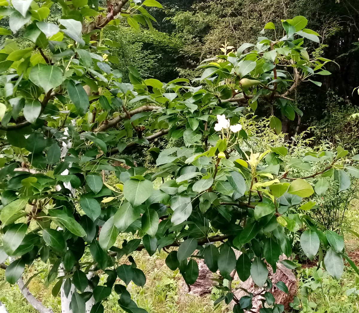 У груши такого разнообразия расцветок нет, но есть сорта с розовыми цветками, например, «Краснобокая» и сорт с красно-бордовыми верхушками однолетних побегов — «Вильямс Красный». Мои груши пока только цветут в разное время и плодоносят зелёными, красными и жёлтыми плодами.