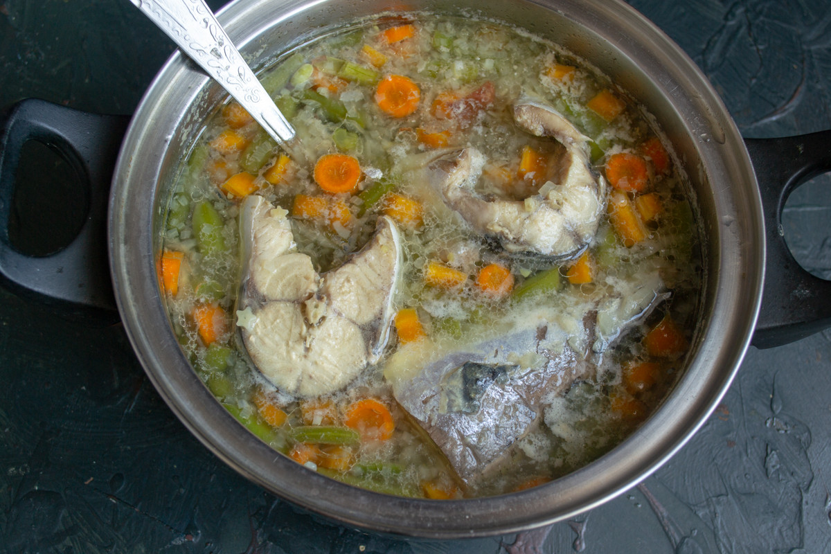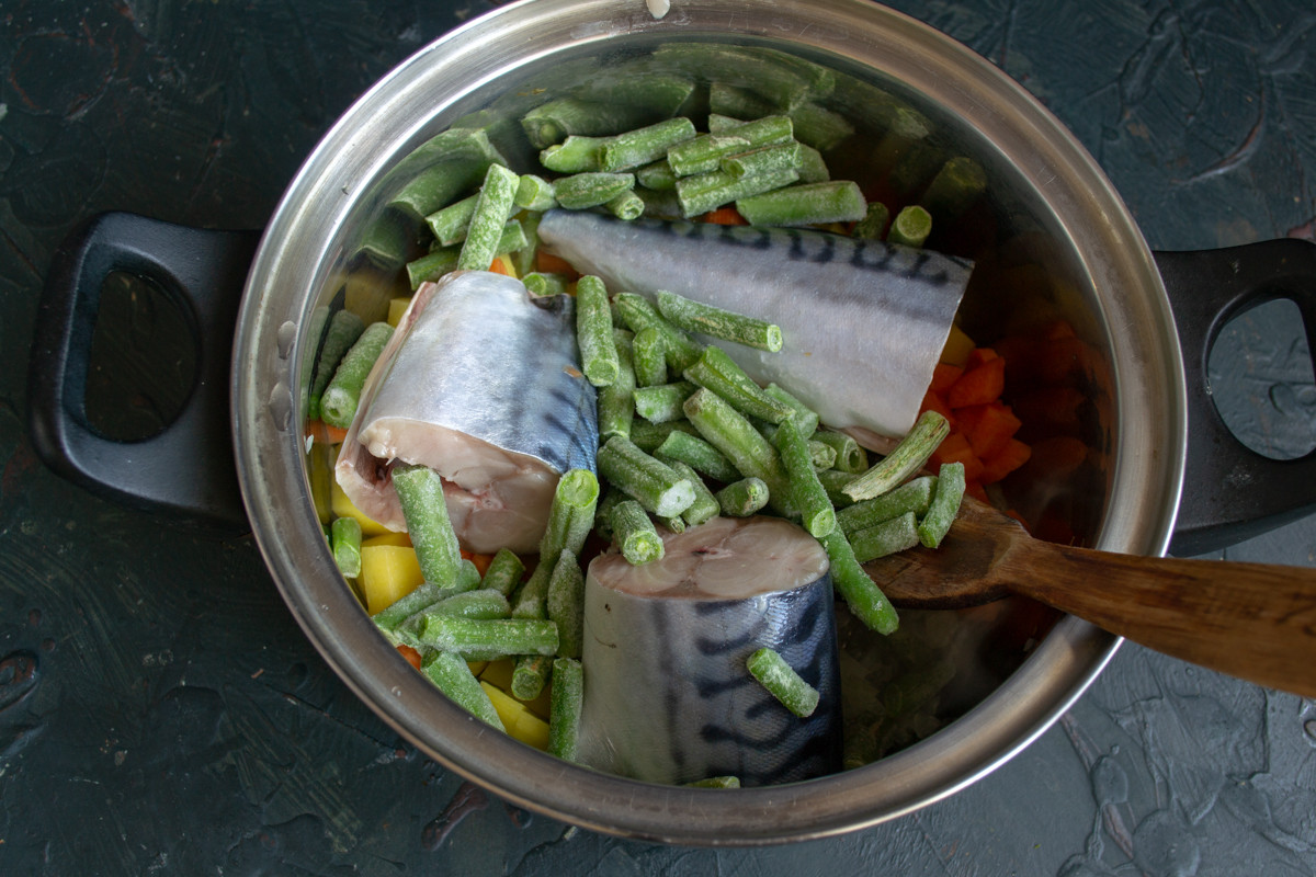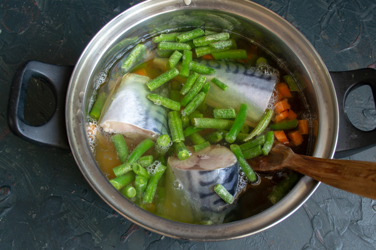 Способ приготовления простого рыбного супа из скумбрии со стручковой фасолью