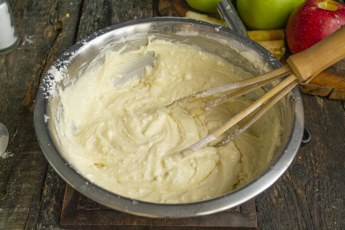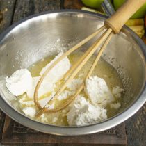 Прикрываем миску плёнкой и оставляем при комнатной температуре на 10-15 минут. Тем временем подготовим яблоки и нагреем духовку до 180 градусов.