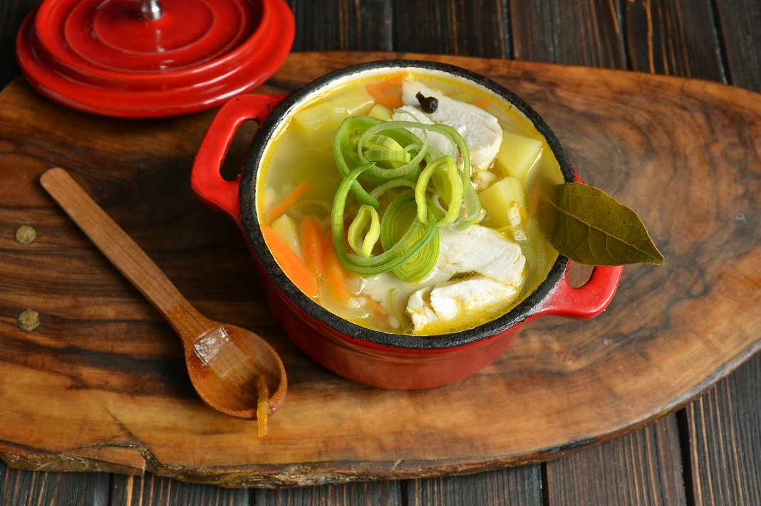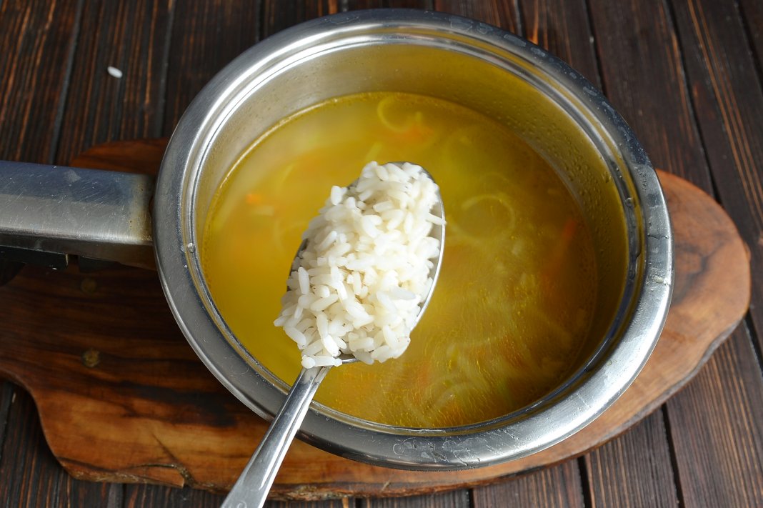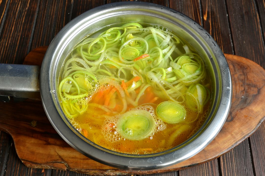 Способ приготовления рисового супа с куриной грудкой и луком пореем