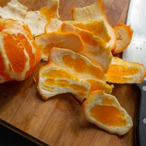 Апельсин тщательно моем, ошпариваем кипятком, чтобы смыть продукты обработки. Срезаем тонкий слой оранжевой цедры овощным скребком.