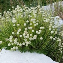 - Сантолина перистая (Santolina pinnata) имеет нежно-кремовую окраску цветков.