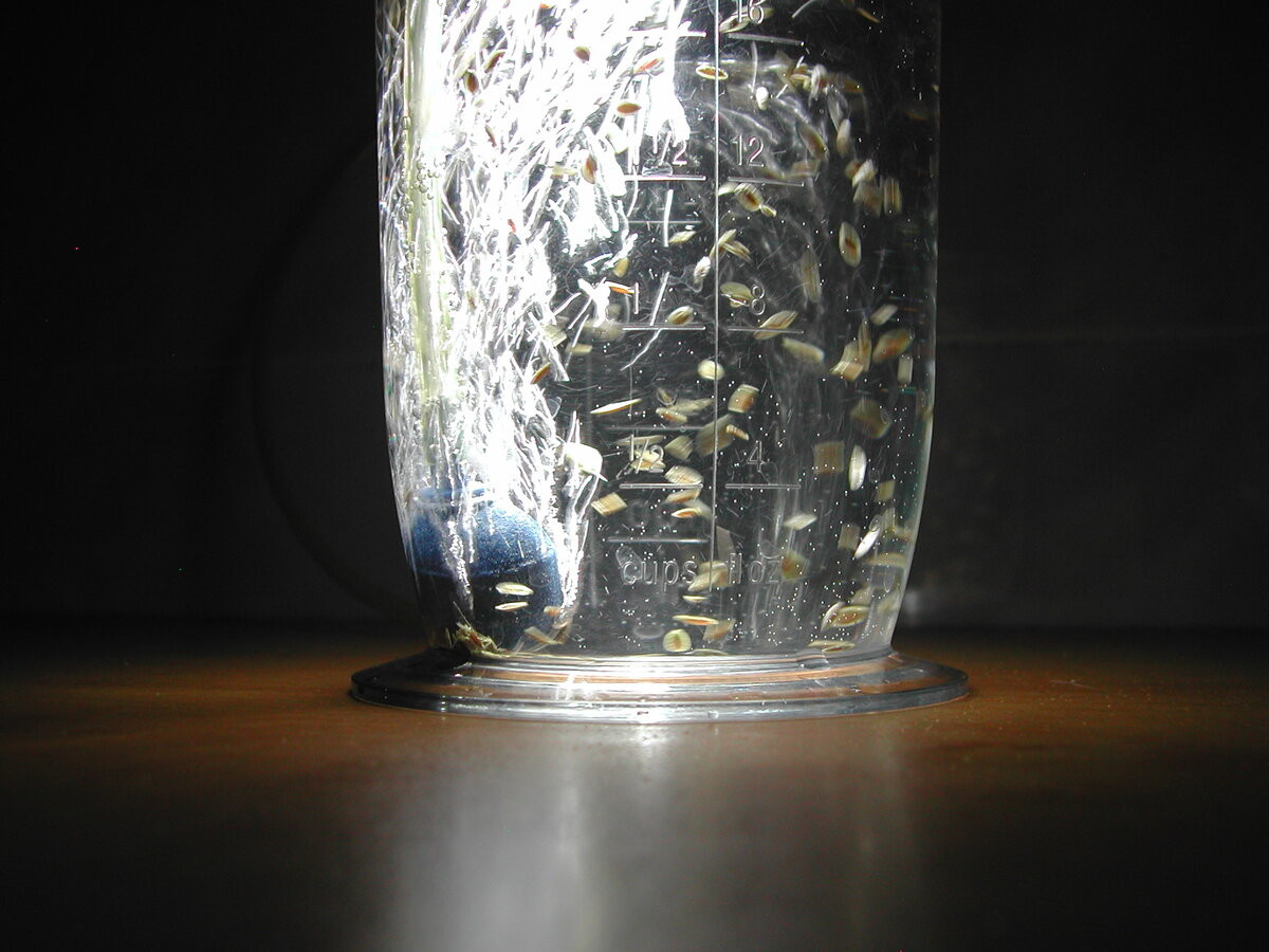 - Бросают в жидкость семена и перемешивают.