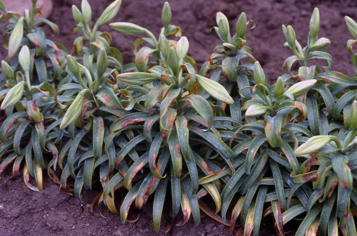 Антракноз, ржавчина и церкоспороз поражают надземную часть, а первый, если не лечить, рано или поздно доберется до луковиц и растение погибнет. Поможет опрыскивание фунгицидами.