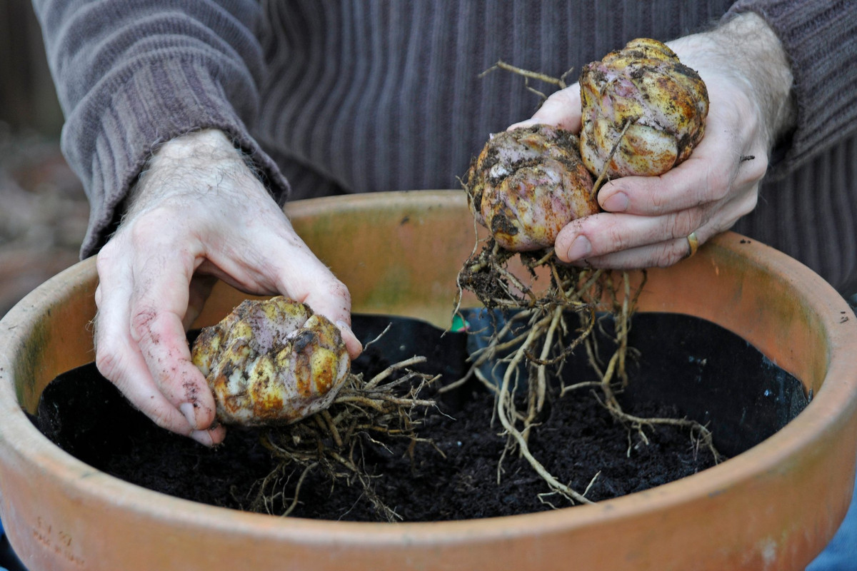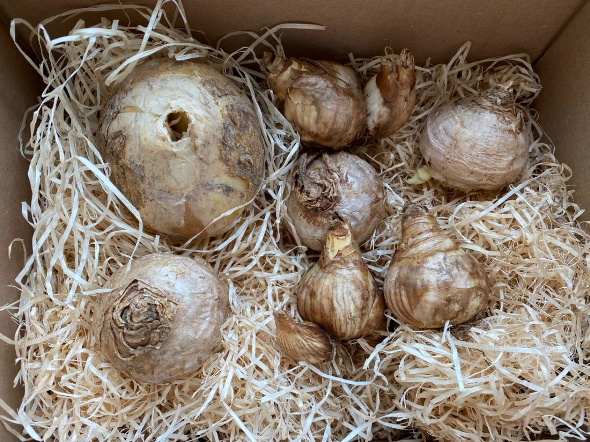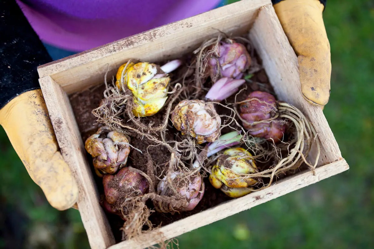 При осенней посадке, если место еще не готово, можно ненадолго прикопать луковицы на разводочной грядке в тени или поместить в емкость с влажным песком, смачивая его при подсыхании.