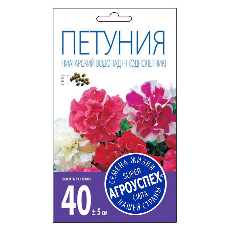 Петунии F1 «Ниагарский водопад» — смесь разноцветных сортов каскадных петуний, имеющих объемные махровые цветки размером 8-10 см. Отличительная черта Ниагарского водопада — большие яркие махровые цветки и каскадные побеги. В начале роста стебли тянутся вверх, а затем под тяжестью цветов прогибаются красивым каскадом. Побеги толстые и гибкие, поэтому не ломаются при разрастании куста. У ампельной петунии более тонкие стебли.