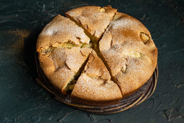 Готовую шарлотку сразу достаём из формы, остужаем на решетке, чтобы низ пирога не отпарился на тарелке или доске.