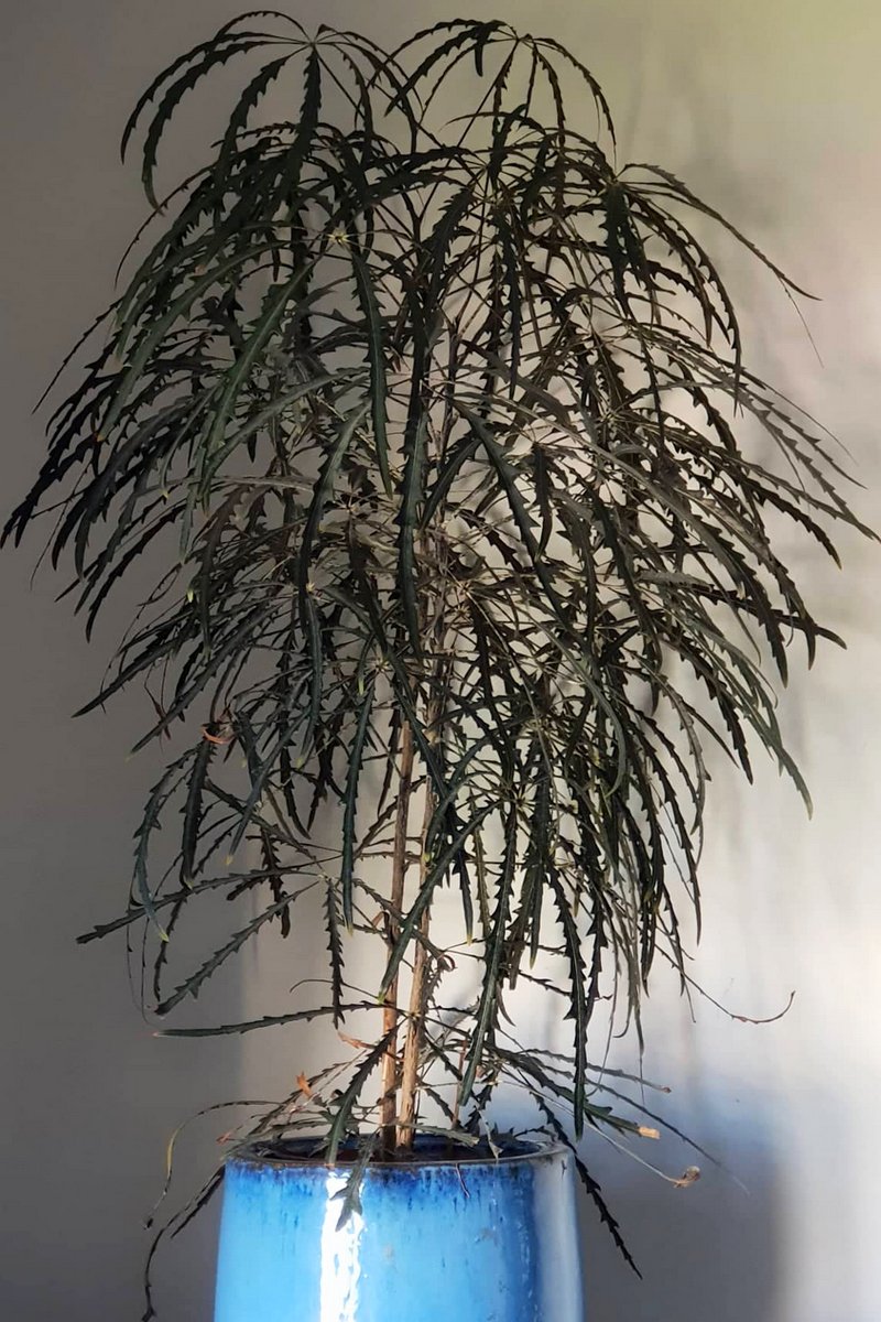 Шеффлера пальчатая (Schefflera digitata) — крупный темно-листный вид с волнистыми долями с заостренным краем.