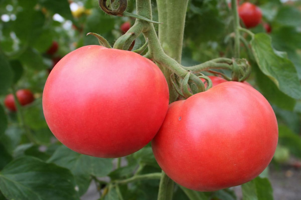 Куст вытягивается до 60–80 см, и формировать его придётся серьёзно. Пасынки лезут активно, и если их игнорировать, урожайность упадёт. В теплице можно попробовать вести в два стебля — гибрид вытянет, в открытом грунте безопаснее оставить один. Плоды получаются ровные, как на подбор, с плотной кожицей. Некоторым не нравится именно эта плотность — мол, жестковаты. Зато такие томаты отлично лежат и не давятся при перевозке.