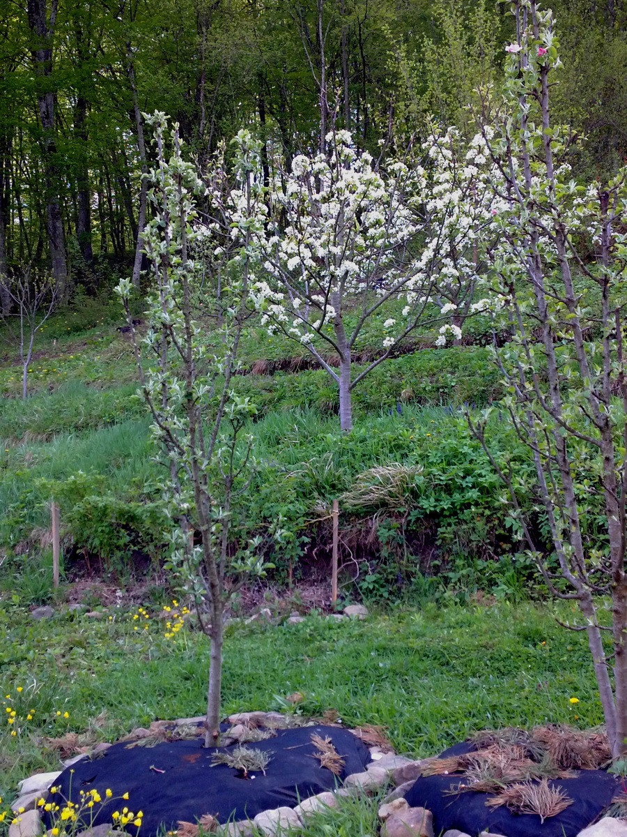 Мы тоже, помнится, хотели вывести старые плодовые на участке, понасажав много нового и интересного. Но не всё новое и интересное захотело расти, у некоторых нам не понравились плоды, одному дюку не понравились предоставленные условия (сыровато оказалось). Всё это время нас выручали оставленные старые деревья. Надёжные. Предыдущие хозяева тоже ведь что попало не выращивали. В благодарность мы прочистили и снизили им кроны, попрививали в скелетные ветки другие сорта и на третий год получили деревья с разносортными яблоками. Дюки на вишне заплодоносили тоже на третий год. Груши — на 3-4-й.