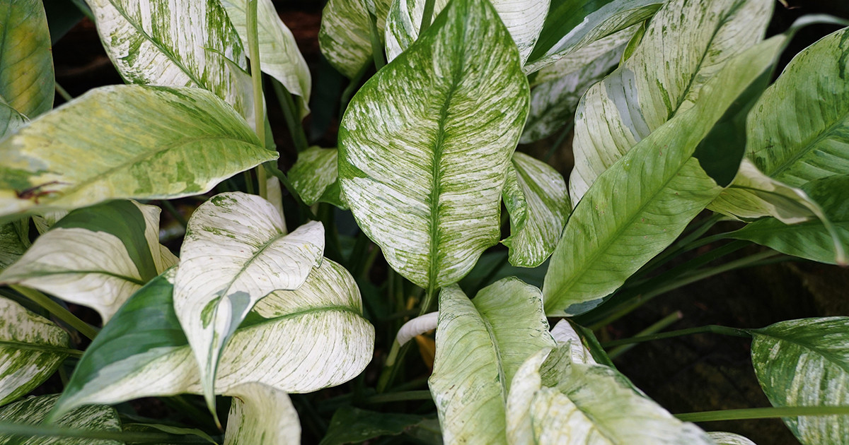Пёстролистность заложена у отдельных сортов спатифиллума генетически. Но интенсивность окраски светлых участков, их частота, размер и форма могут отличаться у растений даже в пределах одного сорта. При плохом уходе сильно страдает контрастность, а некоторые листья могут быть почти полностью зелёными с отдельными светлыми вкраплениями. Или жёлтыми, если дело совсем плохо.