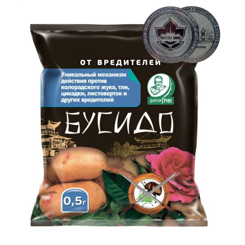 Первые опрыскивание в стадии «зелёный конус» можно провести препаратом «Бусидо». В его состав входит очень эффективный инсектицид – клотианидин, отлично работающий против вредителей, имеющих резистентность к другим химическим соединениям. «Бусидо» поможет справиться не только с тлёй, а заодно и с рядом опасных вредителей многолетних плодово-ягодных и декоративных культур.