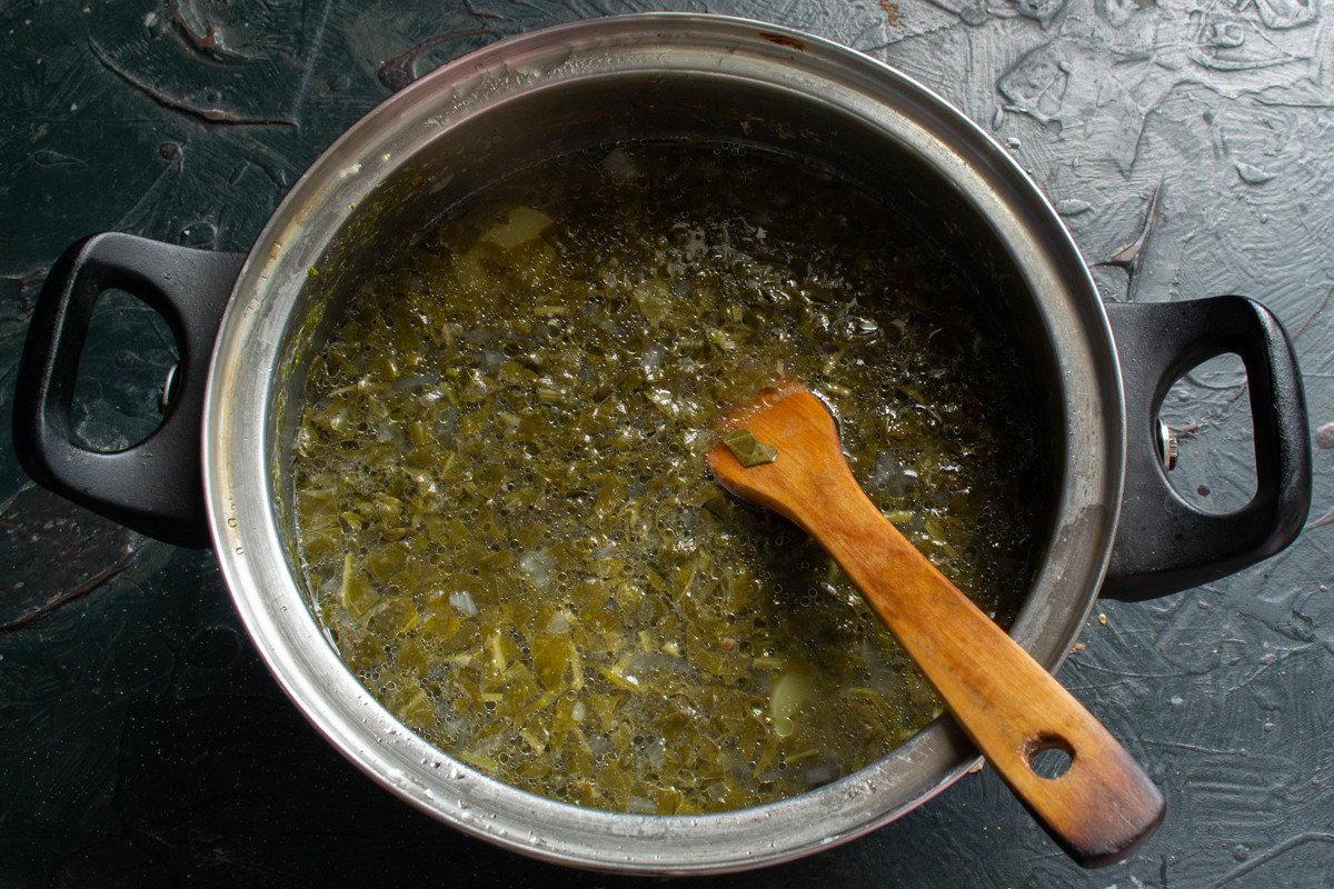 Когда овощи сварятся, бросаем в кастрюлю нарезанный щавель.