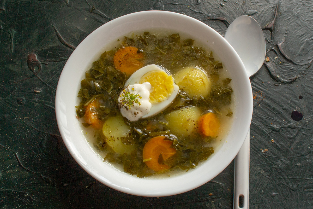 Щавель трава не только доступная, поскольку растет практически повсеместно, но и полезная. В 100 г щавеля содержится около 70% суточной дозы витамина С. Как не собрать витамины, которые можно сказать, растут под ногами! Бывает щавель шпинатный или «английский щавель», он менее кислый. Обычный щавель со шпинатом не сравнить, два совершенно разных супа получаются, хотя добавить немного шпината к щавелю можно, чтобы разбавить кислоту.